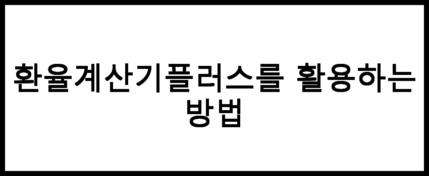 환율계산기플러스를 활용하는 방법